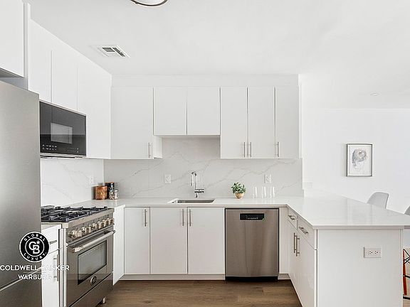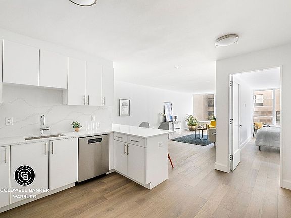 An inviting foyer leads to a spacious and stunning open kitchen featuring custom cabinetry and all-new stainless steel appliances. Ideal for both the at-home chef and entertaining, this features fantastic pantry storage and ample counter space. The kitchen opens onto your spacious living/dining area with large windows that overlook Seventh Avenue.