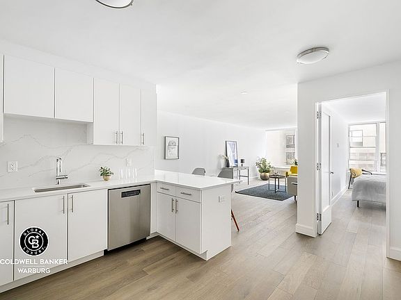 The king-sized bedroom is bright with large windows and a deep closet. The newly renovated bathroom features porcelain tile and a sleek, glass-enclosed shower with modern fixtures. Incredible storage, a brand-new Bosch washer and dryer, and new hardwood floors throughout complete this stunning Chelsea loft.