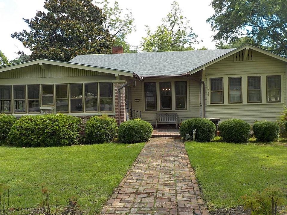 Charming 1920s bungalow with significant Tifton history! The home of local artist Annette Rigdon Swan offers original features such as wood floors, fireplaces (decorative), six-panel wood doors, door hardware and more. The wrap-around glassed in front porch welcomes you to the front entry. The LR opens to a formal dining room with french doors. The original 'sleeping porch' opens to the cozy kitchen and makes a great den/seating area. Three bedrooms and two baths complete the picture. Hall bath has original porcelain/iron soaking tub. Attached to the home is a former carriage house that was converted to Mrs. Annette's art studio and additional bedroom space. This studio can be entered from the house or has exterior access. A large shop with outside access could accommodate vehicles for car storage. Located in Tifton's Historic District, this home is convenient to Downtown, Fulwood Park and other community amenities.