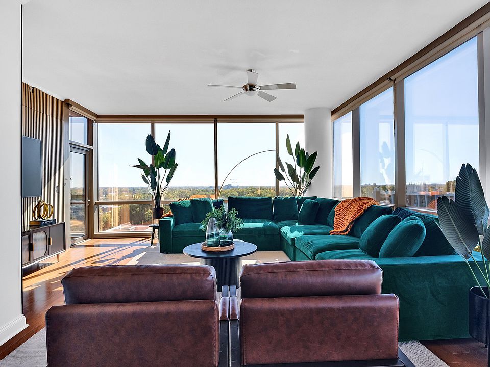 Renovated bathLight-filled condoDedicated office spaceLarge walk-in showerRooftop pool and patioQuartz countersPrivate balconies