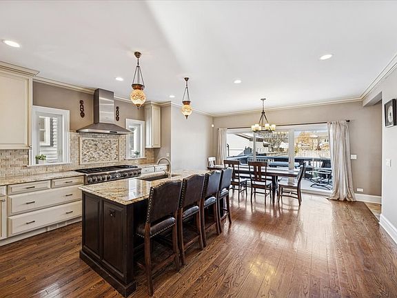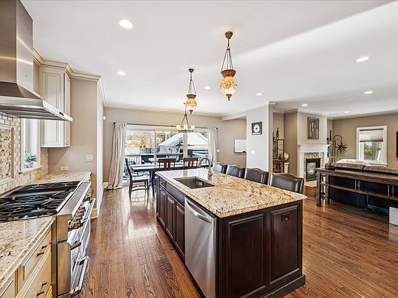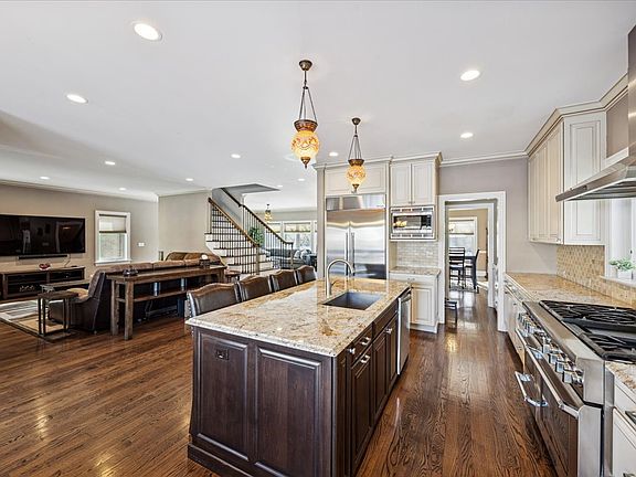 Newer-construction Riverside home built in 2015 on a spacious lot, offering four full levels of thoughtfully designed living space. The first floor features a wide-open layout ideal for entertaining, highlighted by a chef's kitchen with custom cabinetry, a large island, high-end appliances, and a butler's pantry. A generous eat-in area opens to a deck overlooking the backyard. The main level also includes a large pantry, mudroom with ample storage, a family room with a gas fireplace, and an expansive living room perfect for hosting holidays and gatherings. The second floor offers a luxurious primary suite with a private balcony and a spa-like bath featuring a soaking tub, custom shower, and dual vanities. Three additional large bedrooms and a convenient second-floor laundry complete this level. The third floor provides a versatile family room ideal for a kids' retreat, along with an additional bedroom and full bath. The finished basement adds valuable living space with a dedicated office area. The oversized lot features a patio area with a jacuzzi tub, creating a perfect outdoor retreat. A must-see home combining space, functionality, and modern design.