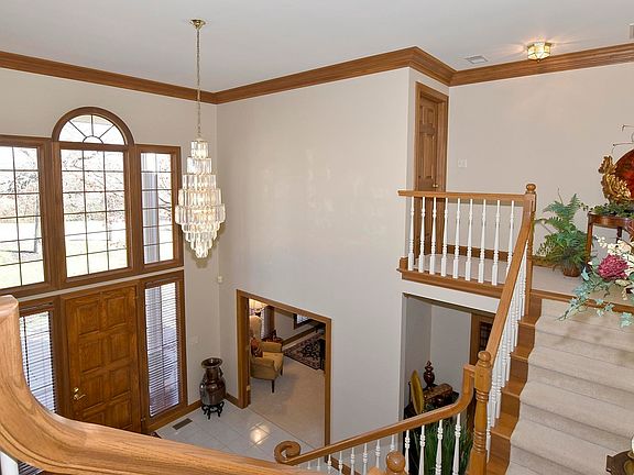 Welcome home to this stately manor located in Deerfield Estates! The circular drive leads to a two-story front porch with lots of windows to illuminate the two-story foyer with natural light. Once inside, an open staircase lies directly ahead, and a formal living roomor office is on one side, with a formal dining room on the other. The stairs lead to three guest bedrooms, one of which is an en-suite, while the other two share a jack-n-jill bath. The great room has a 14’ ceiling, a wet bar and wine rack, a bay window, and a brick fireplace with gas logs. Enjoy a gourmet kitchen with an island with an electric cook top, all new stainless steel appliances in 2023 including double wall ovens, a walk-in pantry, and a large eat-in area with new 2” wood blinds to match the trim. French doors lead to the owners suite that features a tray ceiling, two walk-in closets, double sinks, a whirlpool tub, and a large shower. A half bath and laundry room complete the main level. The living space continues with a lower level complete with a full kitchen, a full bath, a media room, a climate-controlled wine cellar, and a large rec area with gas log fireplace and doors leading to a covered porch and pool. Plenty of space in the large storage room that has exterior doors for lawn equipment access. The large deck is accessed from the kitchen and has been updated with wrought iron railing. The yard has been updated with an inground pool surrounded by new landscaping and retaining walls, and all new lights. The grounds have a sprinkler system for easy maintenance.