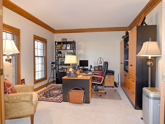 - 1st Bdrm En Suite, Bookcases, Built-in Desk, Ceiling-9+, Ceiling Fan(s), Central Vacuum, Walk-In Closet(s), Stone Counters, Crown Molding, Eat-in Kitchen, Entrance Foyer, Soaking Tub, Guest Quarters, Kitchen Island, Pantry, Double Vanity, Wet Bar, Kitchenette, Stand Up Shower, Tub and Separate Shower, Tub/Shower Combination, Main Level Bedroom Suite, Formal Dining Room, Custom Cabinetry