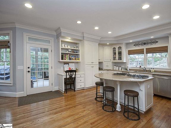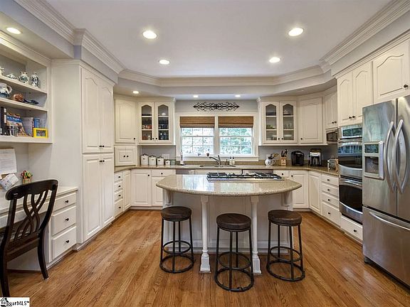 Welcome home! This beautiful 4 bedroom, 4 1/2 bath home is located on a beautiful 1.03 acre lot in the exclusive neighborhood of Spaulding Farm. The main level features a large dining room with built in cabinets, updated kitchen with silestone countertops, stainless appliances including a 5 burner gas cooktop, double ovens, and microwave. The kitchen opens to the breakfast room with wet bar, and great room with built in cabinetry and a fireplace with gas logs. The master suite is located on the main level and has a recently updated master bath with heated floors, a stand alone tub, double sinks, separate shower and his and her walk in closets. Upstairs you will find 3 additional bedrooms, 2 full baths, laundry room and a large bonus room with built in cabinets and another fireplace with gas logs. The basement can be used as an exercise/rec room featuring built in cabinetry, fireplace, wet bar and a full bath. The beautiful, private yard can be enjoyed from the heated and cooled sunroom, spacious deck or patio below. There are mature trees, playhouse and trampoline complete this backyard oasis! The three car garage offers plenty of room to park and also has room for a workbench with a yard access door.
