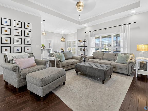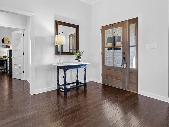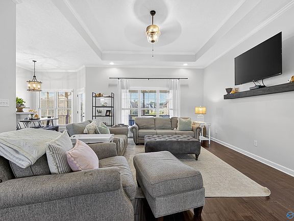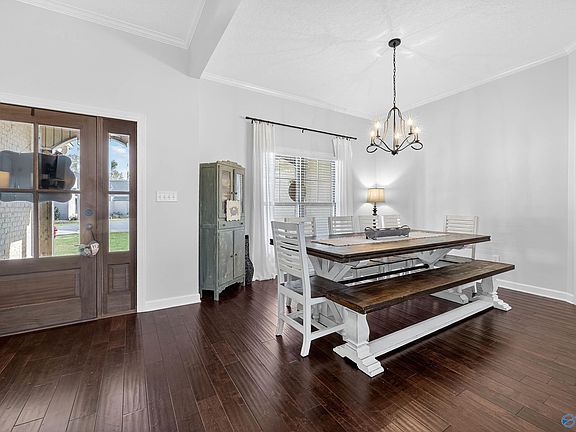 This beautiful 5-bedroom, 3-bath home offers elegant design and modern comfort throughout. Featuring 10-foot and vaulted ceilings, rich hardwood floors, and exquisite crown moldings, every detail has been thoughtfully crafted. The gourmet kitchen boasts quartz countertops and premium finishes, while marble and tile bathrooms add a touch of luxury. The spacious master suite includes a double vanity, soaking tub, and separate shower. Enjoy outdoor living on the screened-in patio overlooking a private backyard complete with a batting cage. A two-car garage completes this exceptional property — a true must-see!