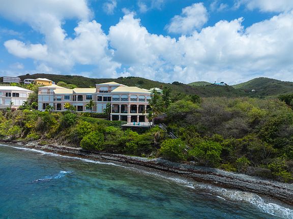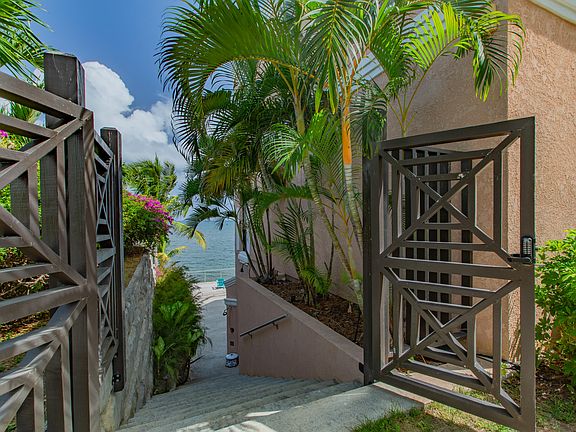 Enjoy island living from this one of a kind, luxurious 4-bedroom, 3-bath, 2-story waterfront condo located in a gated East End complex with unobstructed views of Buck Island! This private end unit blends elegance with comfort, offering plenty of room to relax and entertain. Spacious 2-story layout with vaulted ceilings & 10-foot doors, central A/C throughout, covered gallery off main bedroom & living area with roll-down shutters. Chef's kitchen perfect for cooking & gathering, large family room on the lower level with wet bar,outdoor patio space with steps down to the water & outdoor shower.This complex features everything you need for a resort-style lifestyle with pool, gym, tennis court, and an automatic generator for peace of mind.