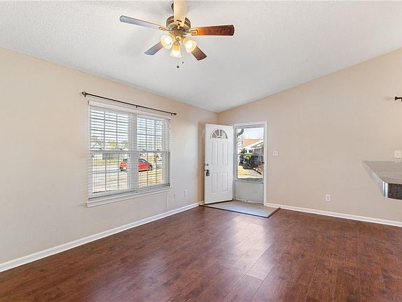 Hurry to see this beautiful home that has an open floor plan, vaulted ceiling, kitchen that has a wrap around bar and high ceilings, plus an open dining room area. Stainless steel kitchen appliances and updated lighting. Wait until you see the extra large walk in closet in the primary bedroom. Updated bathroom has a private door in the primary bedroom and a separate door in the hall. There is a real laundry room with built in cabinetry, not just a laundry closet.  Don't miss the private covered patio, and fenced back yard with a large shed. All this a located in Great Bridge High School district.