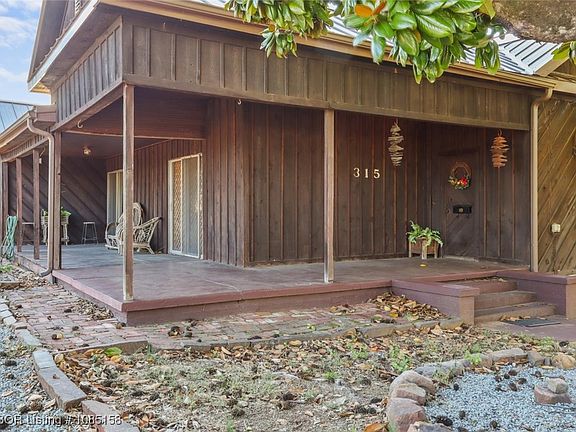 Partial wrap-around porchGorgeous hardwood floorsDurable metal roofUnique rock patio