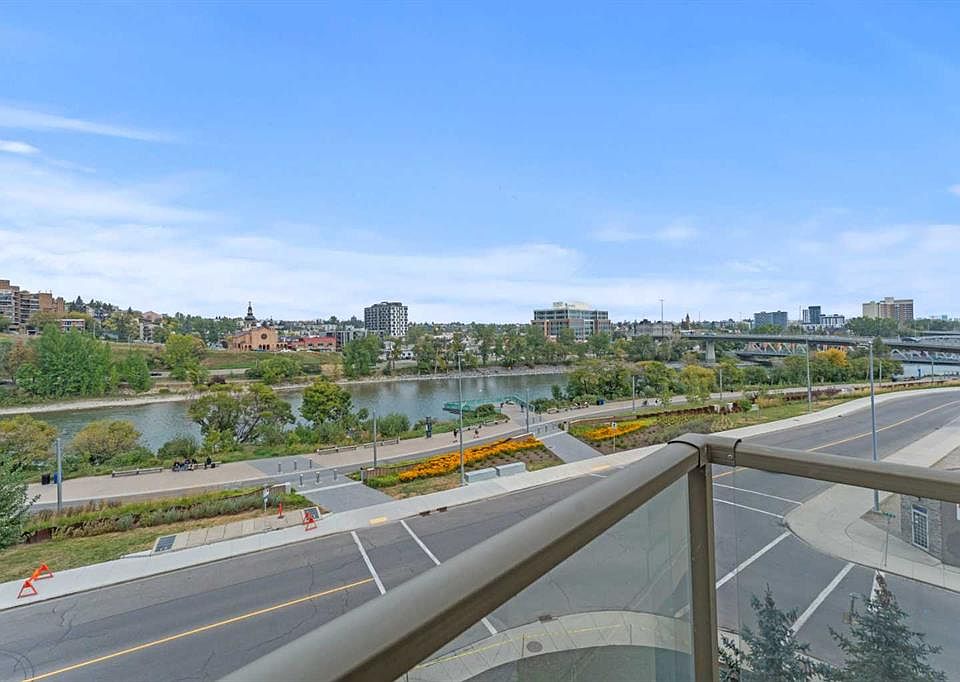 RIVERFRONT VIEWS | NEW VINYL FLOORING | 2 BED 2 BATH | Welcome to Riverfront Pointe, where urban living meets serene riverfront views. This stunning 2 bedroom, 2 bathroom condo offers unobstructed panoramas of the Bow River and pathway system from a spacious private balcony—perfect for morning coffee or evening relaxation. Inside, the open-concept layout has been recently upgraded with new vinyl flooring throughout, providing a fresh, modern feel. The well-designed kitchen features granite counters, stainless steel appliances, and a large eating bar. The bright living and dining areas are framed by floor-to-ceiling windows, filling the home with natural light and dramatically highlighting the remarkable view. The primary bedroom includes a 4-piece ensuite, while the second bedroom and full bath provide flexibility for guests or a home office. In-suite laundry and a custom entertainment unit add everyday convenience. Riverfront Pointe residents enjoy premium amenities including a fully equipped fitness facility, outdoor patio, full-time concierge, and secured underground parking. Nestled in the heart of East Village, this home is steps to river pathways, parks, Chinatown, Eau Claire, and downtown’s best dining and entertainment. Pet-friendly (with board approval), this residence combines location, lifestyle, and value in one of Calgary’s most vibrant communities. Book your private showing today!
