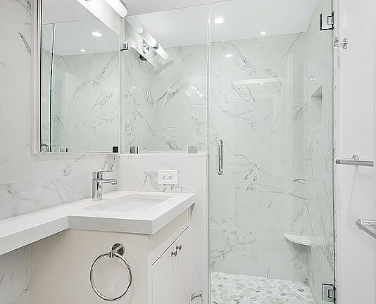 The oversized bedroom easily accommodates a king-size bed along with additional furnishings, and features two large reach-in closets. Just outside the bedroom, you'll find a fully renovated bathroom and a convenient linen closet.