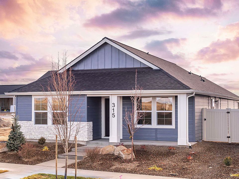 **HOLIDAY SAVINGS PROMO: Builder offering $5,000 incentive on accepted contract before Dec 20, 2025** Step into easy, comfortable living with “The Spruce” by Eaglewood Homes—one of the first completed homes in the brand-new Mayfield Springs community. Part of our new Trailhead Collection, this plan delivers legendary Eaglewood craftsmanship at an exceptional price. Enjoy the affordability of a townhome alternative, but with your own private fenced side yard and zero shared walls. A welcoming covered front porch and low-maintenance landscaping make everyday living feel simple and relaxed. Built using Firewise-inspired construction practices, The Spruce includes materials and design elements selected for resilience, longevity, and added peace of mind. Whether you’re buying your first home, simplifying your lifestyle, or looking for a smart investment The Spruce is for you! Located in the scenic rolling hills south of Boise, Mayfield Springs offers peaceful surroundings paired with quick freeway access to Boise, Meridian, and Mountain Home—making it an ideal blend of nature and convenience. Pool, Sport Courts, Playgrounds, Fields, and more are expected by 2027. BTVAI. Home is complete, ALL PHOTOS ARE ACTUAL. Bring your real estate agent for access to tour the home via lock box, or tour on your own with just smartphone and ID!