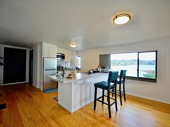 Located on the water in the Strawberry area of Mill Valley is this unique 2Br/2Ba unit. Soak in amazing water views and SF skyline views from the living room or kitchen. Both bathrooms have bee recently updated and there is bonus space, perfec for a home office or excersize area. This unit comes with an oversized 1 car garage and access to the boat dock. Utilities are not included. A small pet is possible upon owner approval.