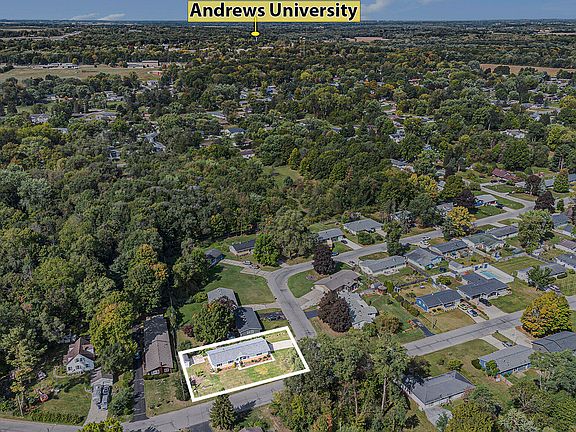 This almost 1,600 sq ft. bright and light ranch home with an open floor plan is less than 1 mile from the Andrews University campus. 4 bedrooms (hard to find in this area), 2 full baths (one connected to the primary bedroom), updated kitchen, baths, lighting, ceiling fans and numerous other updates throughout (see list of improvements in ''Documents'' tab). The basement is dry and one-half is semi-finished. The home sits on a corner lot with plenty of garden space, lovely 8 x 16 storage shed and private backyard patio. Enjoy the quiet neighborhood and easy walk to the high school, 4 elementary schools, public library and downtown Berrien Springs Village.