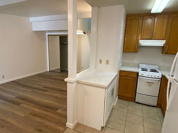 This studio unit features an upgraded kitchen with newer cabinets, granite countertops, electric range, full-size refrigerator, laminate floors in the living room, tiled flooring in kitchen/bathroom, a small in-unit loft area for additional storage, one assigned carport space, and an assigned storage closet. There is a separate laundry room on site with multiple laundry machines available as well (Required to download a payment app in order to use machines).