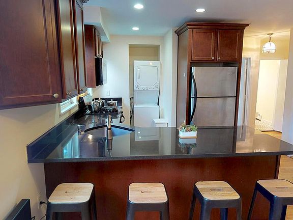 Private room available at this lovely 4 bed, 1 bath unit in Cambridge. The interior sports hardwood flooring, high ceilings, and large windows that boast lovely views of the tree-lined neighborhood. The kitchen is equipped with modern amenities and stylish accents, incorporating black granite counters, Frigidaire appliances, and cherry cabinets that provide ample storage space for all your pantry supplies. Additionally, there's an in-unit washer and dryer for an added level of convenience. Parking spaces available on a first come first serve basis.