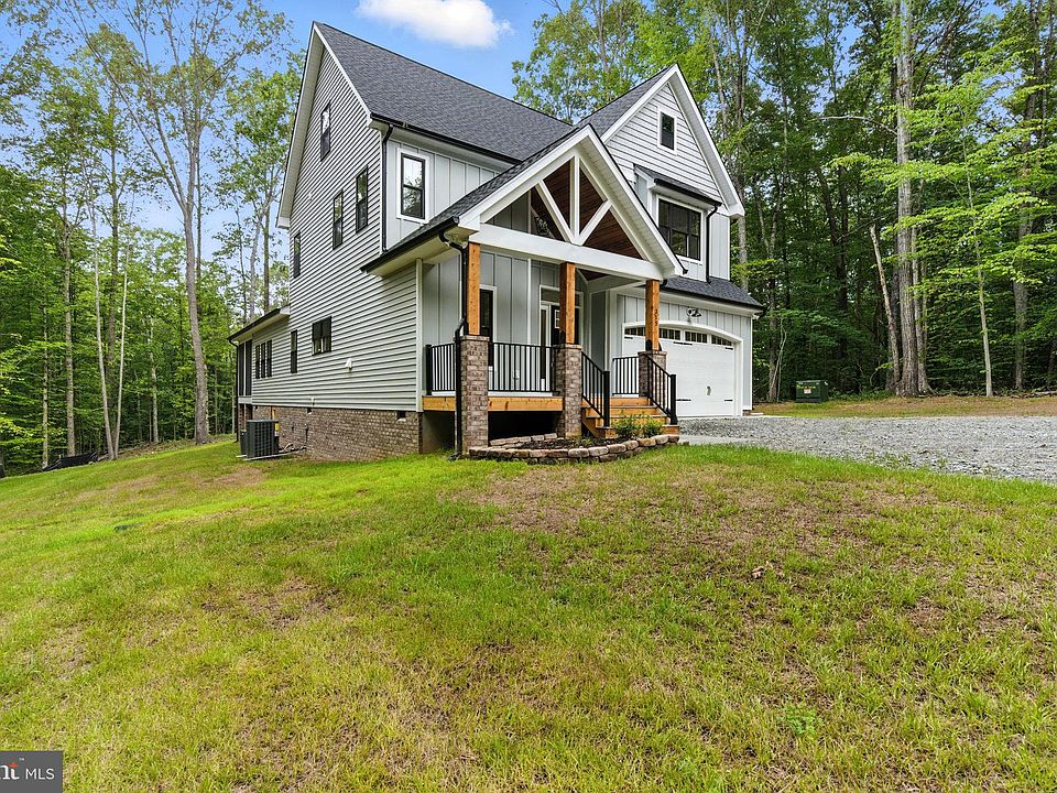 Brand New, Fully Completed, and Move-In Ready! This stunning Craftsman-style lake-access home is located in the highly sought-after Freshwater Estates subdivision on the public side of Lake Anna and comes with assigned boat slip #72 in the waterfront common area! Thoughtfully designed across three levels with 3,100 finished square feet, this home showcases high-end finishes and a well-planned layout. Built by Custom Craft Homes. It features 4 spacious bedrooms (including two primary suites, each with its own private bath), 3.5 bathrooms, and a bright, open-concept floor plan. The kitchen with granite countertops, center island, stainless steel appliances, tile backsplash, and white cabinetry accented with elegant gold hardware flows into a large living area with vaulted ceilings, exposed beams, and a propane fireplace framed with shiplap and a chunky wood mantle. A main-level primary suite, laundry area, and a home office space complete this level. Upstairs on the second level, there is a second primary bedroom with its own bath, two additional bedrooms and a full bath. Your family and guests will love the third floor that offers a large bonus room ideal as a recreation space, second family room, or even a fifth bedroom. Enjoy the outdoors with a screened-in back porch and a covered front porch featuring cedar columns and a wood ceiling. A conditioned crawlspace and two-car garage complete the home, all situated on a beautiful 2-acre lot. Exceptional lake location on the popular Contrary Creek where you'll also enjoy its incredibly convenient location, roughly 45 minutes from Richmond, 90 minutes from DC, less than 5 miles from the town of Mineral, about 6 miles from the New Bridge Landing Shopping Center, where you'll find groceries, restaurants, ABC, nail salon and the nearby vet clinic, nursery, Lake Anna Taphouse and other local wineries and breweries.