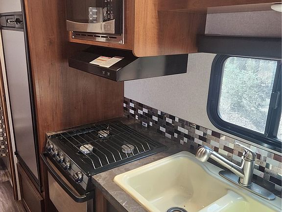 Short term vacation rental camper or long term flexible rental camper located next to the house. The house is being renovated. The camper is available now. Its a 2017 jayco camper that is 23 feet long. Has the bed and the sofa futon plus dining table and kitchen.
