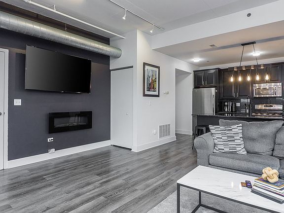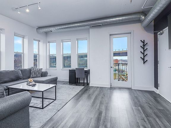 1 bed 1 bathroom third floor unit in highly sought after FRONT STREET LOFTS of Lemont. Corner/end unit with expansive windows giving tons of natural light and scenic views. Freshly painted throughout with high end new vinyl flooring. Fabulous kitchen with upgraded cabinetry, stainless steel appliances, expansive island with seating and granite counter tops. Large bedroom with custom flooring. Bathroom with new tub surround, glass door and shower head. Exposed duct work, high ceilings and concrete add to the cool urban vibe of this space. Full size washer and dryer in unit. Only 1 bedroom unit with an ncredible, private, outdoor covered terrace space with second balcony. Convenient downtown Lemont location near shopping, dining, Metra, expressway access, parks, walking trails,schools and The Forge Outdoor Adventure Park. Elevator building and garage parking included! Schedule your appointment today!