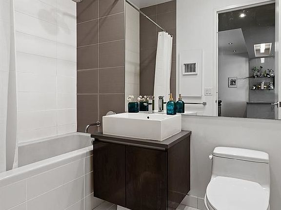 Modern and chic living awaits at 315 Gates Avenue #3B. This east facing unit has an oversized living room large enough for a dining table. The open concept kitchen with stainless steel appliances is bordered by an island perfect for entertaining. Morning light will gently wake you in the large, cozy bedroom. Featuring ample closet space throughout the apartment you'll have an incredible amount of storage. In unit washer and dryer and central A/C complete this incredible living package. Units of this size and quality at this amenity rich, Karl Fisher designed, premier condo building at the crossroads of Bedford-Stuyvesant and Clinton Hill are rarely available. Magnificent interiors by Durukan Design, including dramatic floor to ceiling windows, will take your breath away. 315 Gates has unparalleled amenities which include virtual doorman, virtual package room, media room, common roof deck, elevator, full-time super and refrigerated food delivery storage. Its prime location is proximate to all that Franklin & Bedford Avenues have to offer with cafes, restaurants and shopping. All of this and low monthly common charges of $380 with taxes at $20 per month make this a wonderful opportunity for a lucky buyer. Tax abatement until 2026.