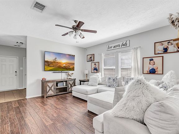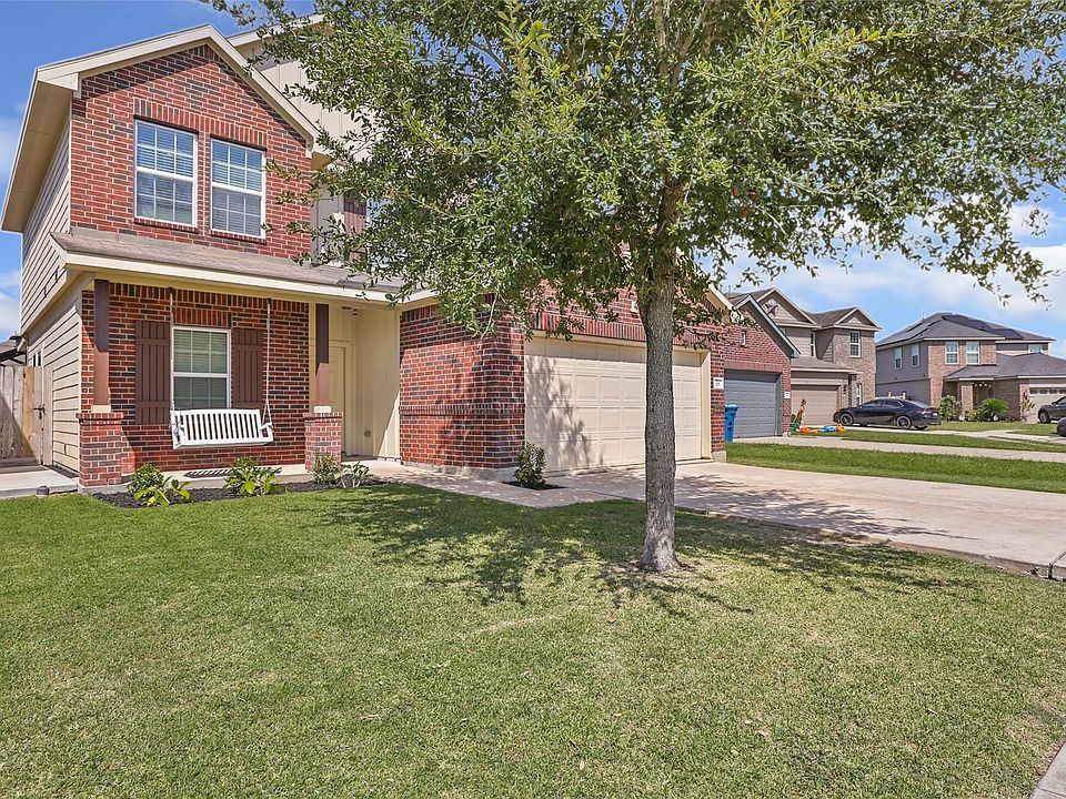 Upgraded 4-Bedroom Home on a Cul-de-Sac in Crosby Village! This well-maintained 2-story home features the popular Pecos 2068 floor plan by Castlerock Builders, offering 4 bedrooms, 2.5 bathrooms, a spacious family room, and an upstairs gameroom. Recent updates include BRAND NEW CARPET throughout, added wood-like tile flooring downstairs, and TV wall mounts with an upstairs TV included in the gameroom. The island kitchen showcases granite countertops and ample cabinetry. The downstairs primary suite features a garden tub, separate shower, and ceramic tile. Outdoor upgrades include a back patio with pergola, and a newly added sidewalk for enhanced curb appeal. Located in a quiet subdivision with easy access to US-90 and FM 2100 and zoned to Crosby ISD—relax knowing this property has never flooded!