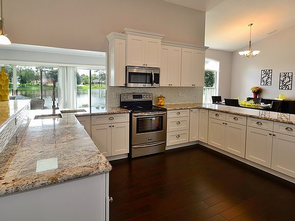 A DREAM COME TRUE: Woodbound Lakes subdivision. Remodel done right: The owners of this LAKEFRONT home did not hold back to create a quality home that is both practical and beautiful. Step into a clean, streamline interior with engineered HARDWOOD and TRAVERTINE floors. VAULTED ceilings accentuate the water views. The tastefully designed kitchen features the most beautiful GRANITE counter tops, wood cabinets and NEW Energy Star STAINLESS STEEL appliances. The kitchen connects breakfast nook, living and dining room all in an OPEN PLAN concept. The living room has a wood burning FIREPLACE with a flat screen TV mounted above it. The split floor plan places the bedrooms on opposite ends of the house. The Master Bedroom area features a double sink with GRANITE vanity, contemporary tiled shower and large walk in closet. Home is pre-wired for a Security system and feels like NEW all the way around while being located in an ESTABLISHED neighborhood.