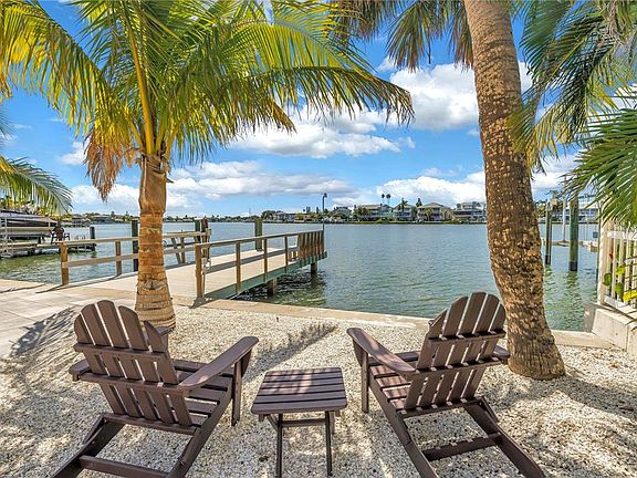 One or more photo(s) has been virtually staged. Experience the pinnacle of waterfront living in this beautifully updated 3-bedroom, 3-bathroom home on a quiet inlet, leading directly to the Intracoastal Waterway. Perfect for boaters, this property features its own private dock and easy access to open water. Adding to the full oasis experience, the stunning saltwater PebbleTec pool and spa glisten in the backyard, surrounded by tropical landscaping. Inside, you’ll find a fresh and modern interior with brand new ceramic tile flooring, new stainless steel kitchen appliances, sleek quartz countertops, and plantation shutters that allow for plenty of natural light. The home is completely move-in ready, featuring newer sliders and windows, a new roof, new hot water heater, new air handler, and new water softener. Enjoy relaxing on the covered back patio overlooking the water or take a short stroll to the powdery sandy beaches to catch sunset. Located in the heart of Indian Rocks Beach, this vibrant coastal community offers a laid-back yet thriving atmosphere with fantastic restaurants, beach bars, and charming local boutiques just minutes away. This move-in ready home combines modern updates, waterfront tranquility, and the best of coastal living.
