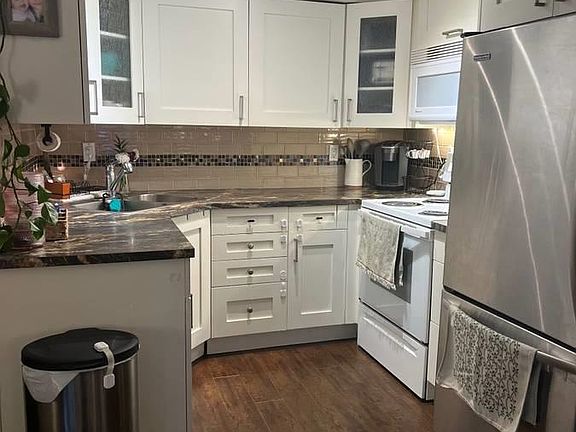 Lower level unitIn suite laundryPrivate outdoor patioUpdated appliancesCozy kitchenWhite shaker cabinetryStone countertops