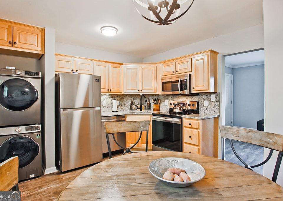 Rare Opportunity in the Heart of Sandy Springs! This prized location blends suburban tranquility with central city convenience. Condos in this tucked-away cluster almost never come on the market because it's perfectly positioned in a quiet, tree-lined residential neighborhood. But just a short walk to everything! Walk to premier retail, fine dining, fast food, dozens of stores, jobs, city parks and even a movie theater plus the new Sandy Springs Performing Arts Center which frequently features national acts. On the MARTA bus line! Meaning you are only minutes from MARTA rail service to Lenox Square, Buckhead, downtown and the airport. Owning a car becomes optional! Inside, discover a modern kitchen with stainless steel Samsung appliances, granite counter tops, and quality cabinetry. The upgraded bathroom boasts a glass walk-in shower with built-in niche and detachable hand held sprayer. Enjoy your spacious living room with vinyl plank flooring, overlooking your community swimming pool and grill. Two carpeted bedrooms with ceiling fans. Step outside and unwind on the fire-escape/balcony, perfect for morning coffee, a quiet read, or evening under the trees-your own little outdoor sanctuary. Contemporary electric HVAC and water heating systems. No natural gas or water bills! Served by good schools: High Point Elementary, Ridgeview Middle and Riverwood High School. Ideal for first-time home buyers, singles, couples, small families, down-sizers or savvy investors.