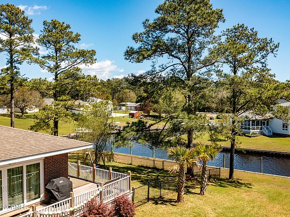 Experience exceptional coastal living in this updated waterfront home with 400' of deep water canal frontage, updated bulkhead(2020) & dock (2021), direct access to Intracoastal Waterway and Bogue Sound! Conveniently located in Sound View Park neighborhood, this property is situated on over an acre lot (2 lots)with excellent elevation, beautiful trees and wonderful views! Could be your Primary Home, Second Home, or Investment Property! Features include updated roof(2017), updated flooring and paint, updated bathrooms, updated windows & doors(2017), updated crawlspace (2024), updated HVAC, generator(2020), detached bonus storage garage building, and more. Another additional bonus update is the Swim Spa pool area that you will love! Great Location and Great Property to make your own!!