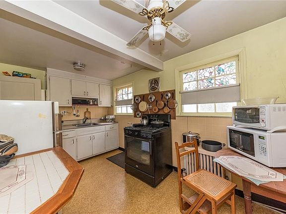 This charming cape cod has some really great features. Enter and notice the spacious living room that this home offers. With some touch ups on the original hard wood flooring, this room will shine from all the natural light coming through. The EIK features lovely original stained glass windows . Make your way upstairs to the attic area that offers an abundance of space. A cozy office area is featured on this level, along with the sizable master bedroom. Out back the fenced in yard is a great place to enjoy summer days. Tank-less HWH, large yard, sitting on a cozy corner lot, this lovely home could be yours.