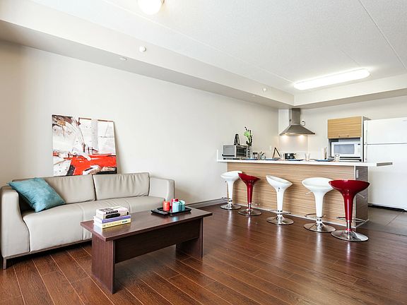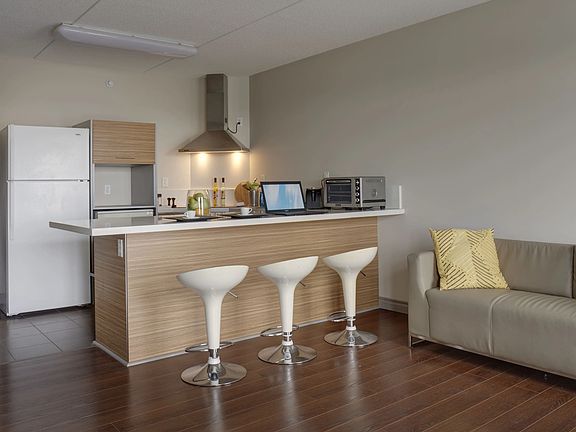 City viewsModern comfortsFurnished mid-rise livingAir conditioningPrivate ensuite bathroomsCozy functional retreatStunning city views