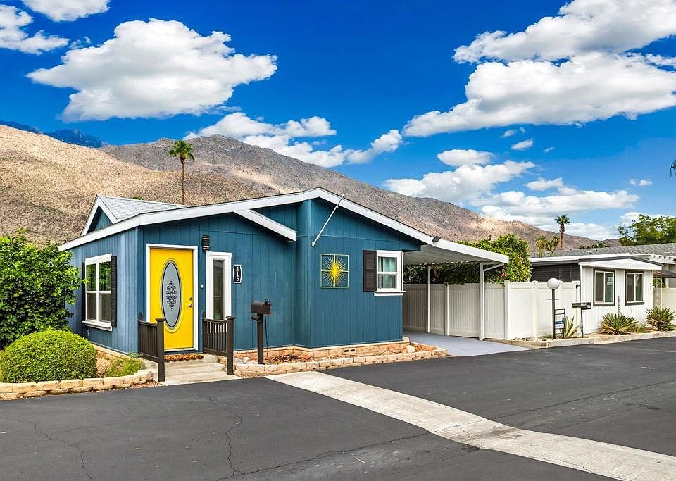 Here is your perfect full-time or pied-a-terre refreshed 2BR + Bonus Room in Palm Canyon Mobile Club. Located in one of Palm Springs' most sought-after manufactured home communities, this updated 2004 residence features newer windows, flooring, bathrooms, appliances, and a freshly painted interior. The fully-renovated open-concept kitchen features a large island with new granite counters, Samsung Bespoke fridge and a new dishwasher, seamlessly flowing into a bright, southeast-facing living area with coved ceilings. A bonus room offers flexible use as an office or den. The guest bedroom and bath are thoughtfully placed off the hallway, while the primary ensuite is privately situated at the end. A spacious laundry room with a full-size, newer washer and dryer opens to a covered outdoor retreat with patio paths and mature fruit trees -- perfect for enjoying breathtaking mountain views and desert breezes. And to top it off there is a Level 2 charger for your EV vehicle. Community amenities include a clubhouse, pool, BBQ area, and dog run, all nestled against the stunning San Jacinto Mountains and surrounded by iconic mid-century homes.Don't miss your chance to own in Tiny Town -- schedule your showing today and experience the Palm Springs lifestyle firsthand.