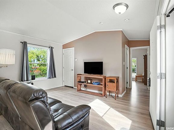 Step into affordable homeownership with this charming 2 bedroom, 2 bath modular home in the welcoming community of Vonda. Set on a 33' wide owned lot - no pad fees here - this property gives you the space and security of true ownership at a price that makes sense. Inside, you’ll find a practical and comfortable open concept floor plan with room for family living in a vibrant community. With 2 bedrooms and 2 full baths, there’s space for kids, guests, or a home office. Out back you'll find a covered patio leading to a manicured backyard complete with a wood working shed and a fireplace area. Excellent for unwinding or hosting. Located directly across from the school, your morning routine just got easier - watch the kids cross the street instead of commuting across town. And with Saskatoon only 30 minutes from city limits, you’ll enjoy the peace of small-town living without giving up quick access to the city. Whether you’re a first-time buyer, downsizer, or investor, this home is a rare opportunity to own property under $200,000. Schedule your private showing today!