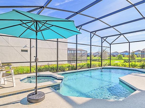 This stunning residence exemplifies luxury living at its finest. Situated in a prime location, this expansive home features everything you need for comfort and entertainment. On the lower level, you'll find a 2-car garage that has been expertly transformed into an arcade/game room, offering endless fun for family and guests. The open-concept kitchen is a chef's dream, showcasing beautiful stone countertops, high-end cabinetry, and top-of-the-line stainless-steel appliances. It seamlessly flows into the family and dining rooms, creating a perfect space for both relaxation and entertaining. Step outside to the oversized lanai and screen enclosed pool deck, where you can host BBQs, take a dip in the pool, or unwind in the spa. This outdoor oasis is designed for year-round enjoyment. Upstairs, an expansive loft with a sitting area and study/flex space provides additional versatility. Surrounding the loft are the remaining bedrooms, offering privacy and space for everyone. The home is nestled in a resort-style community that includes a 24-hour guarded gate, a luxurious 6,700 sqft private clubhouse, a zero-entry pool, jacuzzi-style spas, a well-equipped fitness center, a game room, a movie room, a playground, and sand volleyball and basketball courts. Located just moments from Walt Disney World Resort, Universal Studios, and other top Orlando attractions, this home offers unbeatable convenience for both relaxation and adventure. Schedule your viewing today and experience the ultimate in luxury living!