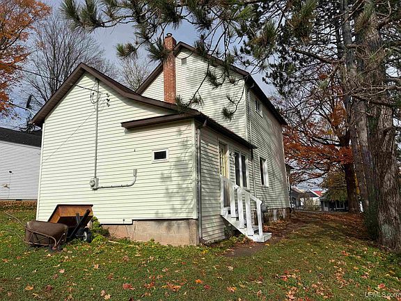 Affordable vinyl sided 2 bedroom home one block from downtown. Windows have been updated along with the electrical. Entire interior was recently painted and doors, windows and baseboard trim will be installed by the seller shortly. Many of the rooms have wood floors that would be beauriful if refinished. Main floor half bath and separate laundry area. Spacious full bath on the second floor with the 2 bedrooms. Partial basement under the main house, crawl space under the kitchen. There is a covered front porch and enclosed back entry with a second stairway to the basement.