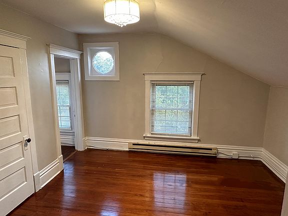 This cozy historic home is cute as a button! This unit is on the top floor loft of the "Coach House" which was part of the Elgin Mayor's Mansion property in 1870. It still has all of the original wood plank flooring, solid wood doors and trim, and warm vintage charm. Everything has been recently painted and restored, new appliances too. The kitchen still retains the historic farm sink and wall faucet. There's a ton of charm here, this is definitely not your typical apartment. Rent is just $1295 and $75 monthly covers all utilities except electric. $1370 total includes ComCast WiFi and private off street parking. Pets add just $35 extra. Get in early this place will go fast.