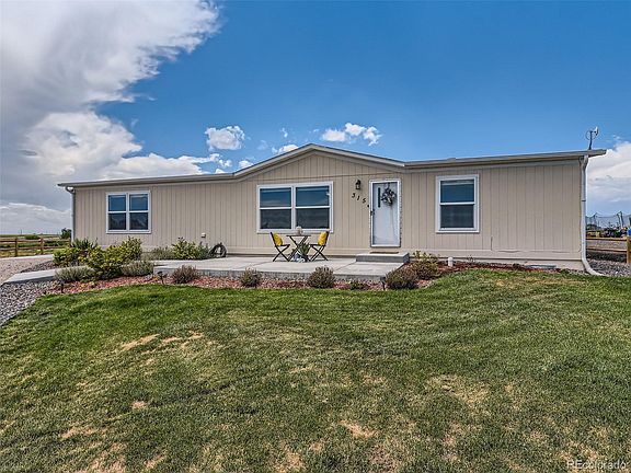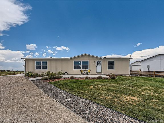 Modern luxury and thoughtful design are uniquely embodied in this 3 bedroom, 2 bathroom manufactured home. Sitting on 2/3 of an acre with a beautiful, completely fenced lawn, this could be the home you’ve been waiting for. Wide-open spaces, no HOA, room for toys, all make this home even more desirable. Quality finishes inside and out include refinished drywall throughout (removing seems from original drywall), an Eco Bee thermostat for the central AC and propane heat, as well as a 1000 gallon propane tank that is owned! This home also comes with a Hunter Hydro wise sprinkler system that can be controlled from your phone. And when winter arrives you won’t have to scrape snow and ice off of your car since there is an oversized insulated 1 car garage. Should you have furry friends there is a dog kennel and dog door for them as well! Located just 36.5 miles to Denver and 35.4 miles to DIA you are still close to all Denver has to offer. This home also qualifies for USDA, zero down financing. Don't miss the opportunity to call this place home!