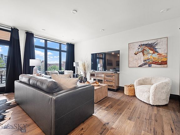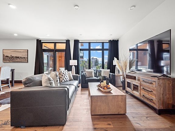 Welcome to Unit #306 at The Henry, a premier six-story condominium community in the heart of Downtown Bozeman. This untouched, fully furnished residence offers true turn-key living, combining modern style with the convenience of a central location. The sleek kitchen and dining area open to a covered balcony with views of downtown, perfect for morning coffee or evening relaxation. Natural light fills the generously sized living room, creating a bright and inviting space for gathering or unwinding. Just off the living room, you’ll find the guest bedroom—ideal for visitors or a flexible office setup. The master suite is privately situated near the entryway and features a walk-in closet and ensuite bathroom, offering both comfort and functionality. At The Henry, lifestyle extends beyond your front door. Residents enjoy a fitness center on the ground floor, a private landscaped courtyard, and secure climate-controlled underground parking. Just three blocks from Main Street, you’ll have Bozeman’s renowned restaurants, boutiques, and cultural venues within easy reach. For outdoor adventure, Bridger Bowl is 25 minutes away, and Big Sky Resort less than an hour’s drive—perfectly blending city convenience with Montana’s world-class recreation.
