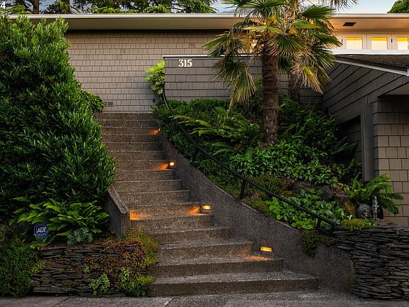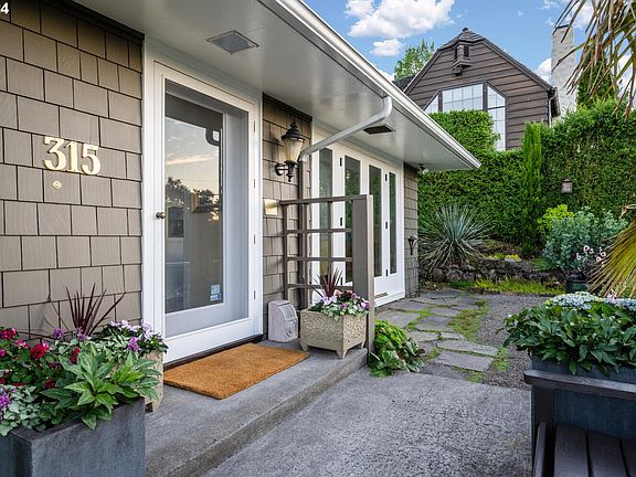 Welcome to 315 NW Maywood Drive, a custom-built Mid-Century modern, designed and built for Paul Neils, President of J. Neils Lumber Company in 1950. Neils, with access to top-tier lumber, envisioned this main-level living space on a premium plot within the sought-after Kings Height neighborhood, chosen for its sweeping 300-degree vista. Neils, privileged with the finest resources, engaged the esteemed Austin Company from Seattle, renowned for its excellence in construction, design, and engineering on large-scale commercial and industrial projects spanning the United States and Mexico. Presently, the home stands as a testament to Neils' vision, meticulously preserved and thoughtfully enhanced, with all modifications ensuring that every element, from doors to built-ins, and lumber, has been repurposed and integrated back into the home.Elevated above the street, the residence offers privacy and breathtaking views of the cityscape and 4 mountains, with Mt. Hood commanding a striking presence, seemingly within arm's reach. Upon stepping into the home, a Sunset Magazine-like ambiance fills the air, as large windows and glass doors connect the interiors with the surrounding gardens, patios, and level lawn. Wide plank oak floors greet you at the entry and run throughout the home, lending a feeling of cohesiveness from room to room. The property has received high-quality restoration and has been maintained meticulously over the years. An expansion in the 1990's created a 3 bedroom home, with 2 ensuite bedrooms, including a spacious primary suite. The current owners furthered the upgrades with luxurious bathrooms, a new roof with remote-controlled skylights, furnace, and central air conditioning, ensuring quality & comfort exude from the home at every turn. A secret garden studio is heated and finished, with a new bank of windows by Arciform, is perfect as an art studio, home office or hobby space.