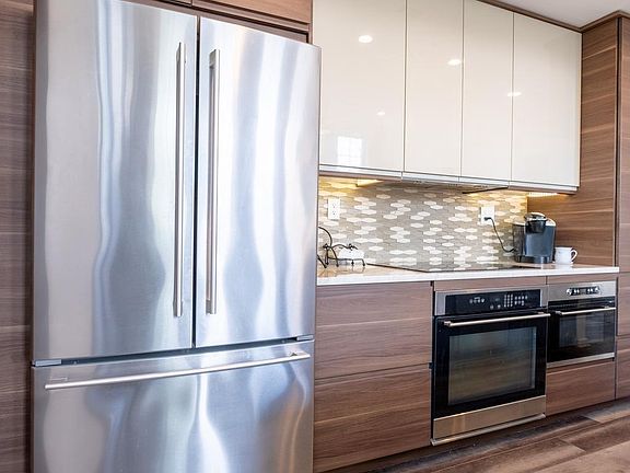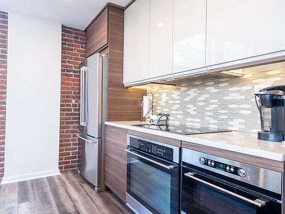 Sleek stone countertopsPrivate storage lockerOversized windowsNatural lightUpdated finishesExposed brick wallsCharming cobblestone street