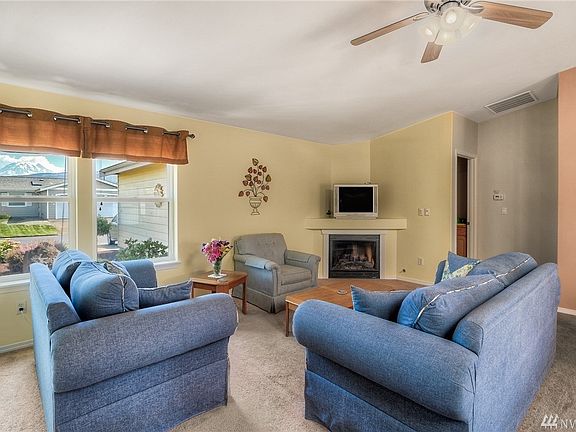 Easy living in this 2 Bedroom plus Den, 2 Bath stick built home in gated 55+ community! You will love the privacy of this large lot and the security of living in Majestic View Estates. Open concept w/ roomy kitchen & eating bar. Slider off dining room leads to nice patio and fenced in backyard. Beautiful views of Mt.Rainier & tons of natural light. Garage, vaulted ceilings, skylights & walk in Master closet are some of the extra features you will enjoy along w/ the clubhouse, gym & pool!