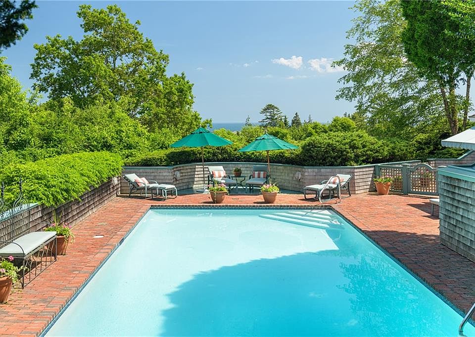 “Twin Ledges” located on historic Ocean Drive, is a charming seaside home offering privacy and seclusion overlooking beautifully landscaped grounds with sprawling lawns and the ocean beyond. This shingled-style residence, custom built in 1982, is set on almost four acres with an interior boasting four levels of finished living space, designed to maximize natural light and scenic views. The spacious living/dining area has an open and airy feel with high ceilings and large windows, leading to a captivating, enclosed porch, perfect for entertaining. The primary en-suite ensures coziness with a wood burning fireplace, plus two additional bedrooms in the main house. A finished lower level with steam shower offers access to the heated saltwater pool, while the two-car garage features an elegant one-bedroom in-law suite above connected by a porte-cochere.