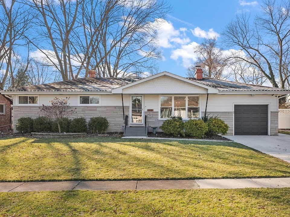 Location, location, location! This tastefully updated ranch is located within walking distance to downtown Crown Point. Offering close to 2,500 sq ft of finished living space w/ 3 bedrooms & 2.5 bathrooms. Open concept living and kitchen area w/ stone fireplace and plenty of windows for natural light. Kitchen offers custom dark wood cabinetry, granite countertops, stainless steel appliances. Primary bedroom has an ensuite w/ updated tiled shower and vanity. Basement is finished w/ rec room, play room area, dry bar, and half bath. Laundry room and extra storage conveniently tucked away with barn doors. 1.5 car attached garage w/ tool area and more storage. Backyard is fenced in for added privacy. Storage shed and gazebo included. Great space for entertaining on the deck and patio! Updates include water heater (2023), dishwasher (2023), deck (2023), new landscaping (2023), driveway (2023). Award winning Crown Point school system!