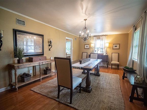 Adorable home with plenty of living space and yard. Original wood flooring and nice paint colors. Huge den addition with half bath is a wonderful space to relax or entertain friends. AC replaced in 2021 Roof replaced in 2018. Refrigerator, washer and dryer remain with sale.