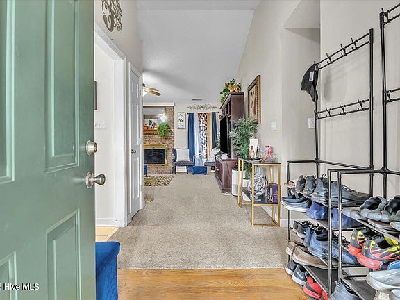 Tucked at the end of a quiet cul-de-sac, this charming home welcomes you with a roomy 2-car driveway and attached 2-car garage. Step inside to a bright foyer with laminate flooring that leads you straight into the spacious living room. Here you'll find cozy comfort with plush carpeting, a vaulted ceiling, ceiling fan, and a brick-surround wood-burning fireplace—perfect for relaxing evenings.