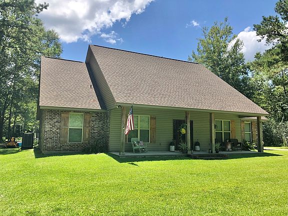 Welcome Home! Drive Down the long secluded driveway. Beautiful 5+ acres. Custom built home with 4 bedrooms downstairs and a large bonus room upstairs. Awesome stained concrete floors, granite, stainless Steele appliances, open floor plan, formal dining, eat in kitchen, huge living room, Acadian style with a country front porch. Guest half bath near back door for entertaining with the family bar b que. Large master suite with his and her closets. Bonus room is cooled with a portable unit. Tons of storage and multiple sheds and outdoor buildings for workshop/man cave.