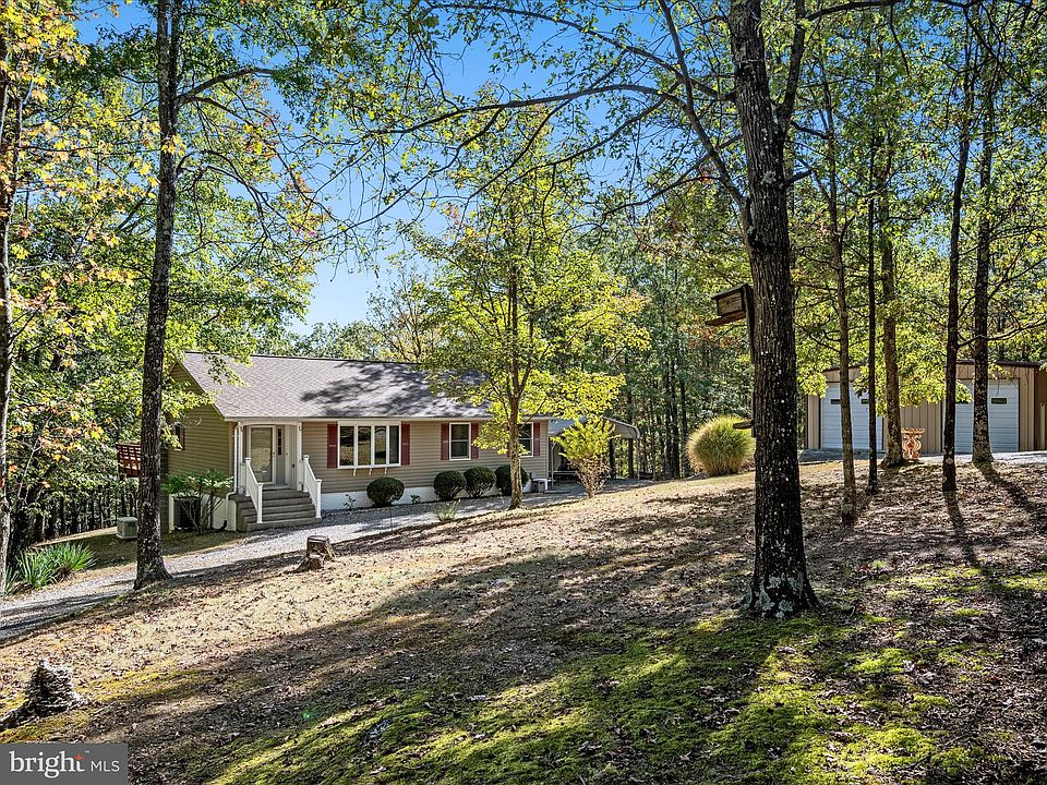 New Roof in 2025! This 3-bedroom, 2-bath rancher offers comfortable main-level living with a full unfinished walk-out basement. The kitchen features cherry cabinets, a built-in desk area, and opens to a separate dining room. Enjoy both a formal living room and a cozy family room that leads to a large rear deck with built-in benches—perfect for relaxing and taking in the mountain views. The primary suite includes a full bath with a soaking tub and separate shower, while two additional bedrooms share a hall bath. The basement offers a laundry area, a wood stove for supplemental heat, and a rough-in for a future bathroom. A mechanic’s dream setup awaits with a spacious 30' x 40' detached garage featuring a concrete floor, blown-in ceiling insulation, LED lighting, two 10' insulated garage doors with openers, a rough-in for a sink, and heat provided by an outdoor wood stove. The air compressor, reel, and hoses convey. Also included are an additional 2-car detached garage/workshop with three roll-up doors, a shed, and an extra carport—providing abundant space for vehicles, tools, and projects. Additional highlights include a propane-powered generator for peace of mind, a whole-house fan, and pull-down attic stairs for extra storage. Ideally located just minutes from Capon Springs Resort, George Washington & Jefferson National Forests, Wardensville, Cacapon River, and Warden Lake. Only 30 minutes to Winchester, VA, about an hour to Northern VA, and under two hours to Washington, DC. Approx. 3 miles to fire & rescue.