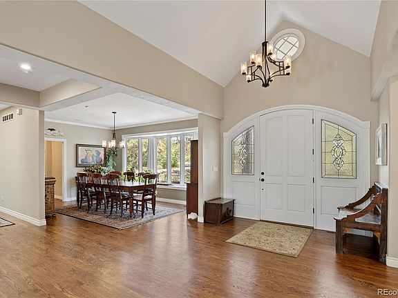 Built by Mesa Properties, this exceptional walk-out ranch is surrounded by mature pines and Gambel oak, creating a private oasis with multiple outdoor spaces. An expansive patio welcomes you to this gracious home, leading to a vaulted, light-filled entry and a surprisingly open floorplan. The living and dining rooms connect, creating the perfect atmosphere for formal entertaining. The heart of the kitchen is an oversized leathered quartzite island, ideal for a more casual gathering. The kitchen is framed by expansive cabinetry, counter space and a 7x6" walk-in pantry. Unique to this beautiful home is an atrium/nook area, with floor to glass ceiling light that brings the outdoors in. Merging with this space is the Great Room, with vaulted ceilings, wood beams and a stacked stone fireplace. The back patio can be accessed from both the Living Room and Great Room. The Primary Suite includes a separate den/snooze room with deck access and dual picture windows framing towering pines. The Primary Bath offers a soaking tub with stunning bay windows, dual sinks, separate shower and custom designed walk-in closet. Two guest baths and a sun-lit laundry room complete the main level living. Two steps take you to the Dream Garage, featuring 1300 fully finished square feet, this space includes an epoxy floor, 60,000BTU gas heater, a hose bib, some built-in cabinets, a service door and natural light from four windows. A striking open staircase draws you to the lower level, leading to an extraordinary custom-built, 650+ bottle wine room. The Rec Room offers plenty of space for billiards, cards and sports-watching and access to a third patio with a small, manicured grass space or potential putting green. Additional rooms include an ensuite bedroom with a big, daylight window and expansive, walk-in closet. A second ensuite bedroom features a giant walk-in closet/playroom. The final bedroom/office also offers a daylight window, walk-in closet and forest views. Tons of storage too!