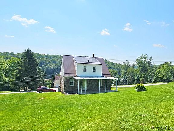 Located in the Forest Hills School District this solid stone home has been loved over the years.The kitchen has oak cabinets, included appliances and is open to the breakfast nook.The separate dining room flows nicely into the spacious living room with a wood burning stone fireplace. The main floor bedroom has a double closet plus one.The second floor has 2 large bedrooms and a 1/2 bath which has plenty of room to add a shower.The usable walk-out lower level has been recently painted and can easily be converted back into a garage. Relax under the rear covered porch overlooking a gorgeous .42 acre lot. Updated boiler, sewers, windows and insulation. Metal roof and plenty of off street parking. Hardwood floors under the 1st floor carpets.
