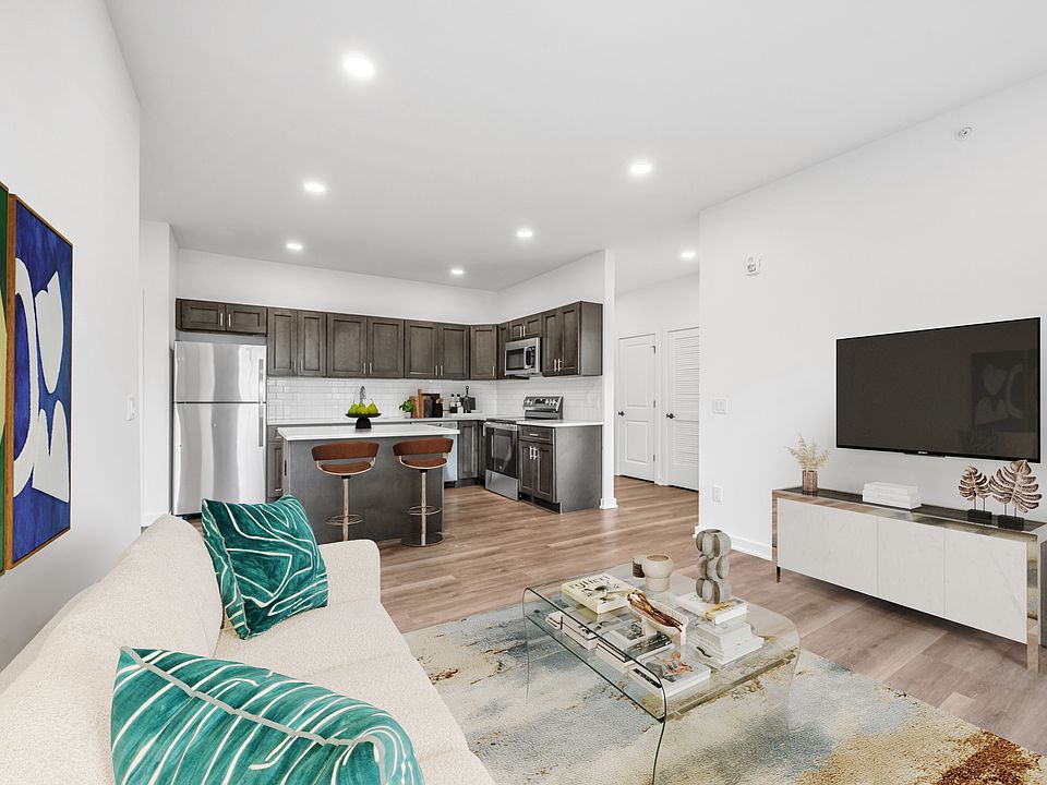 Discover pure luxury in this stunning, new construction 2 Bedroom / 2 Bathroom apartment conveniently located in highly sought after East Rutherford. Stretching across 945 SqFt, this brand new unit features gleaming wood floors, in unit washer/dryer, multi-zone heating and cooling, two balconies and plenty of sunlight throughout the day. This beautifully designed home includes entry foyer, kitchen, living room / dining room combo w/ balcony, Master Bed w/ ensuite bathroom and balcony, guest bedroom, full bathroom, and laundry. Chef's kitchen features SS appliances, custom cabinets, quartz countertops, and breakfast bar. 315 Railroad is a one-of-a-kind building featuring virtual doorman, resident patio, dog run, and ample parking. Conveniently located just steps from downtown East Rutherford & Rutherford, NJ Transit train station and bus stop, restaurants, shopping, parks, and schools. This rare opportunity is one you don't want to miss!